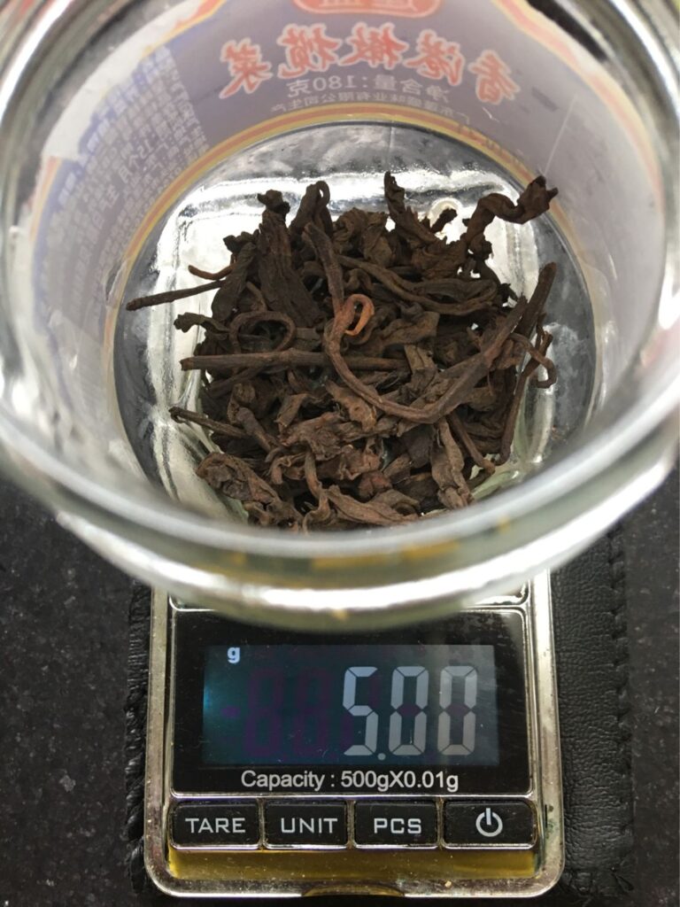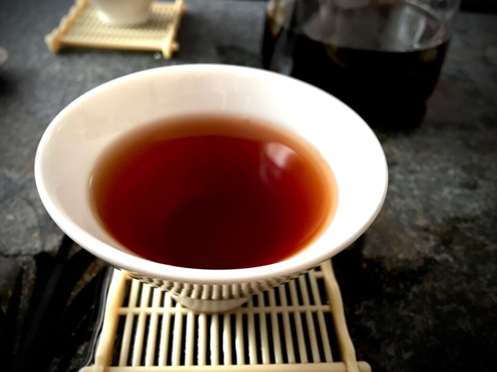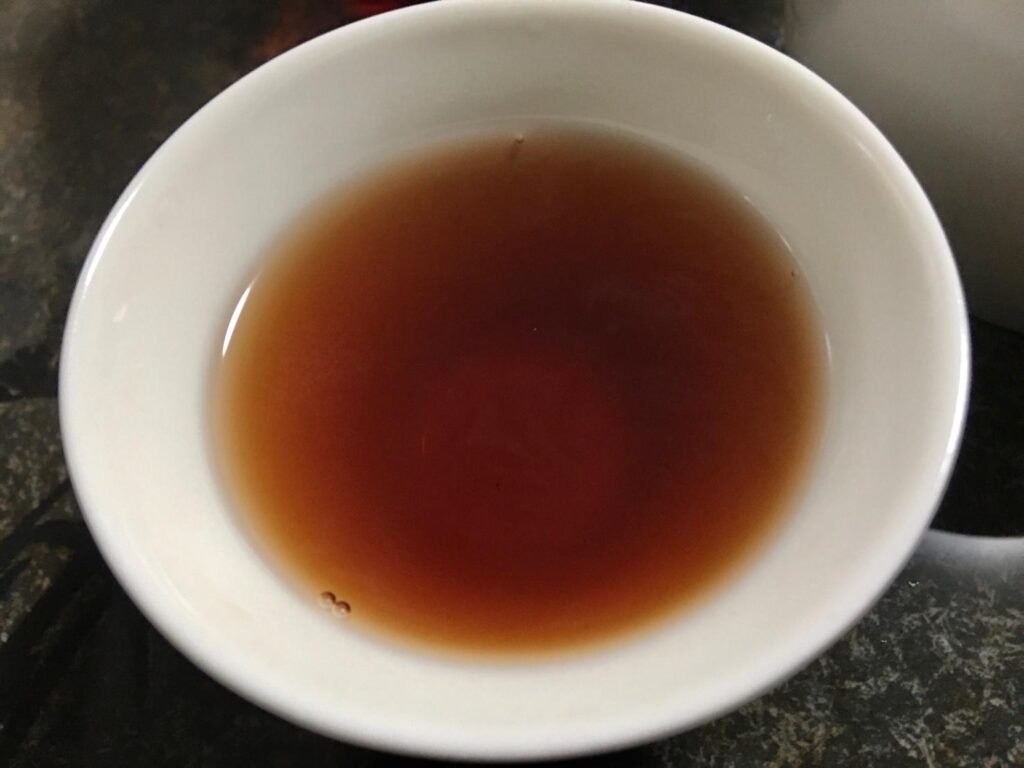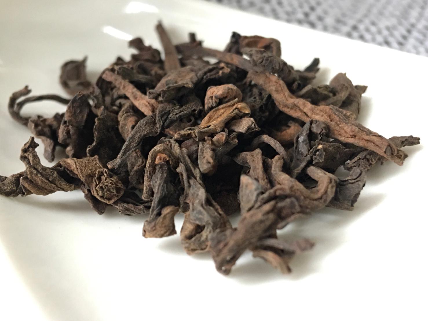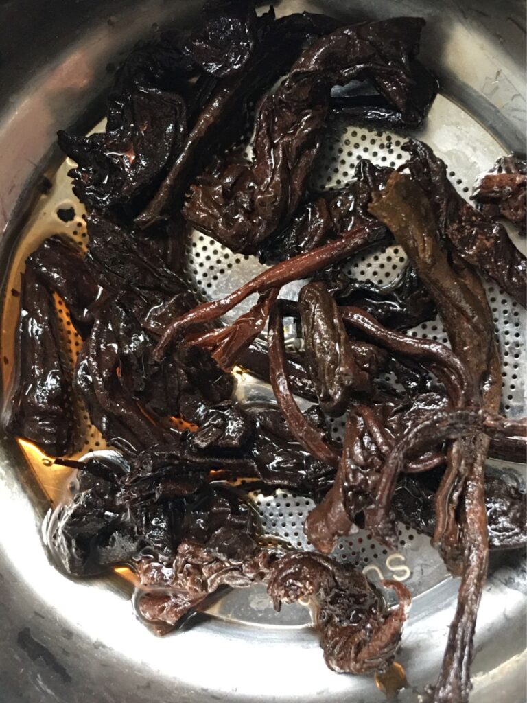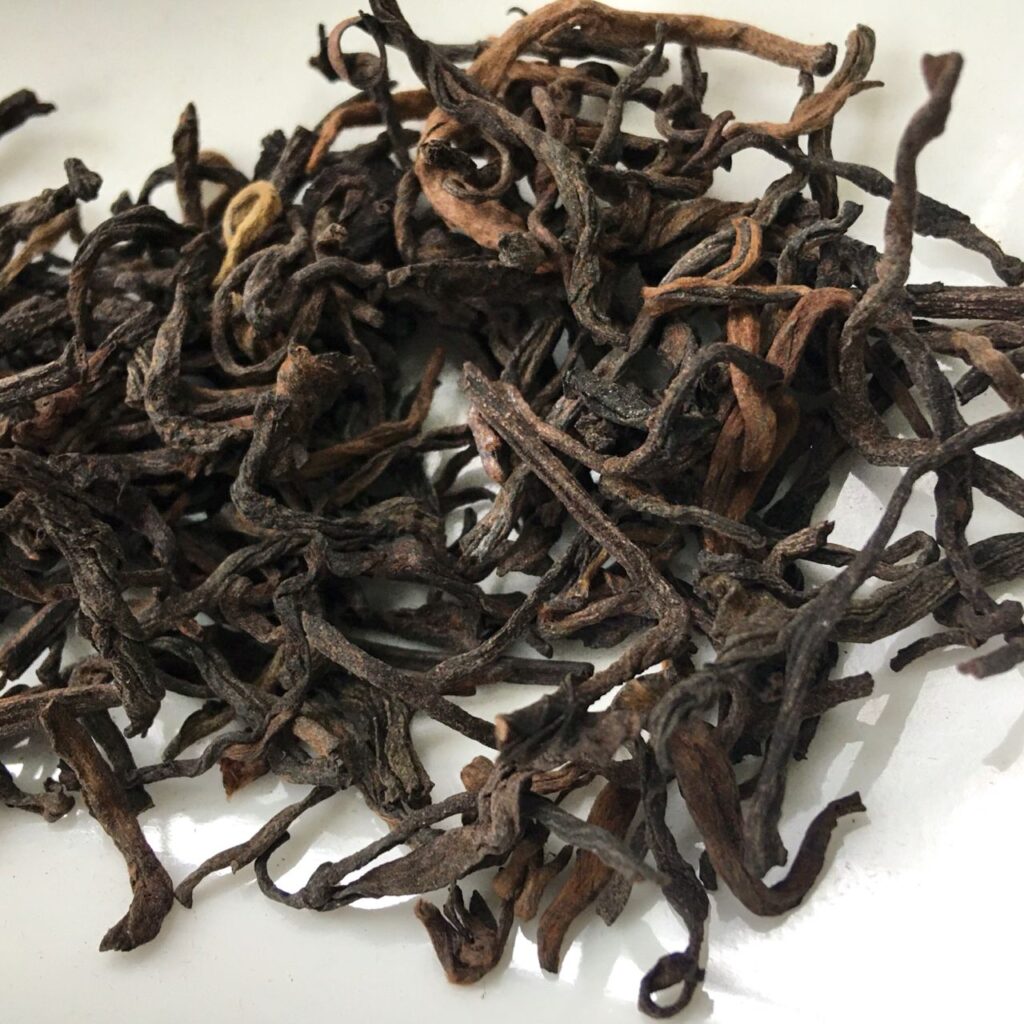 1982; var. assamica, and/or Qimao( taliensis); prepared in Menghai, Yunnan, packaged in Hong Kong, stored in Kunming, Yunnan; bud & 3-4 leaves, Menghai Wò Duī(握堆) Shou Pu’er process; elev. unknown; #TodaysTea, #今天的茶, #JīnTiāndeChá.