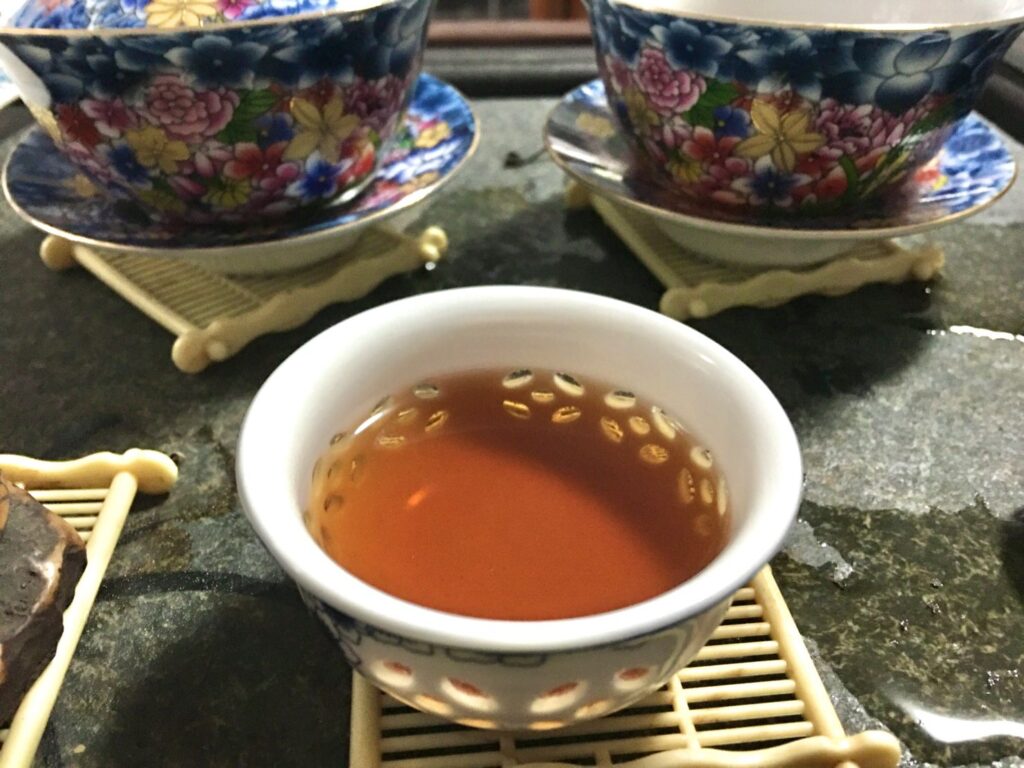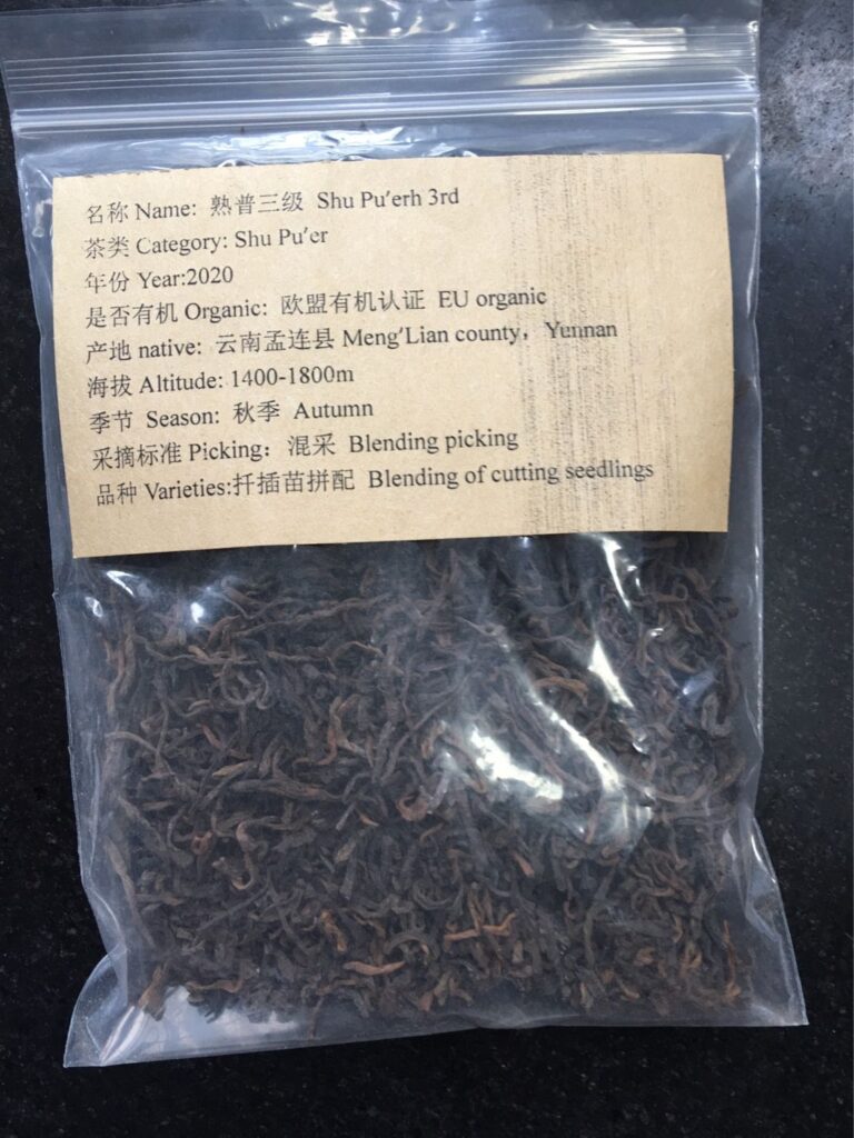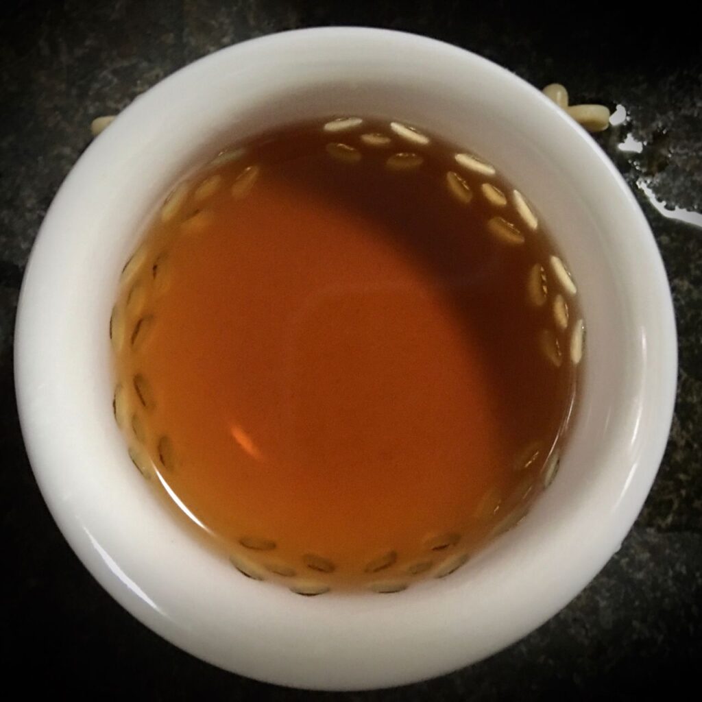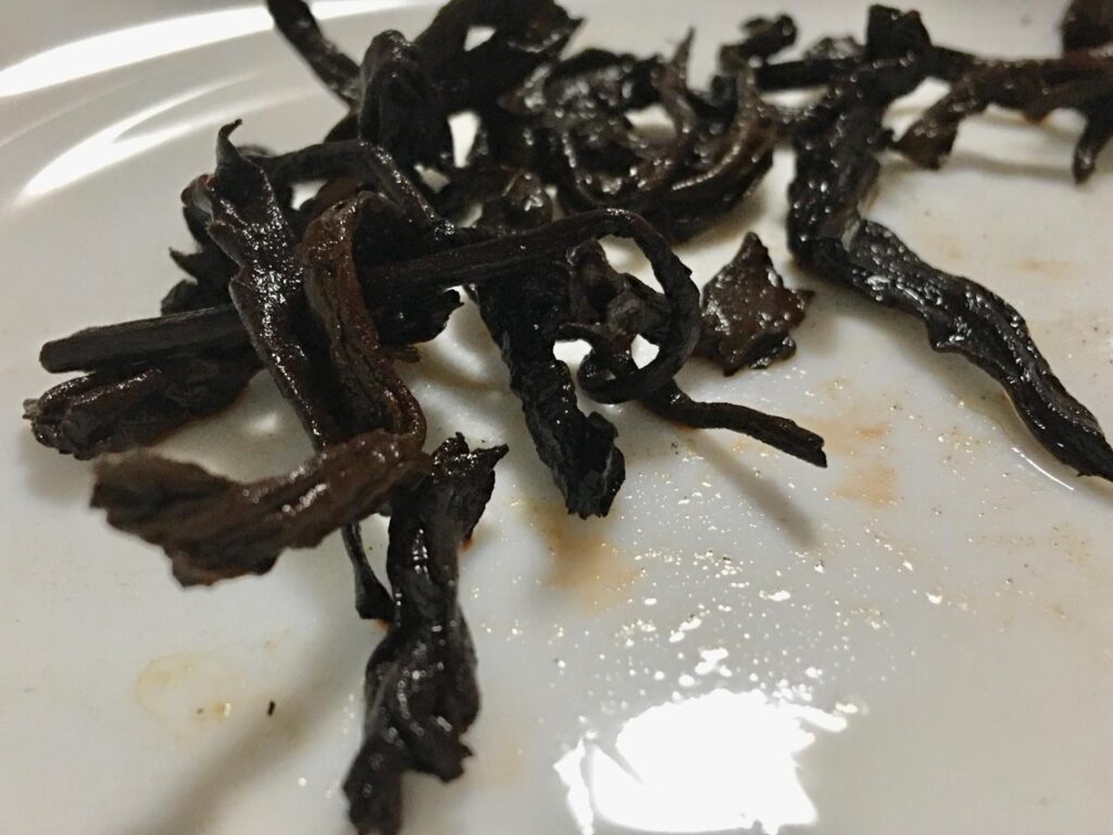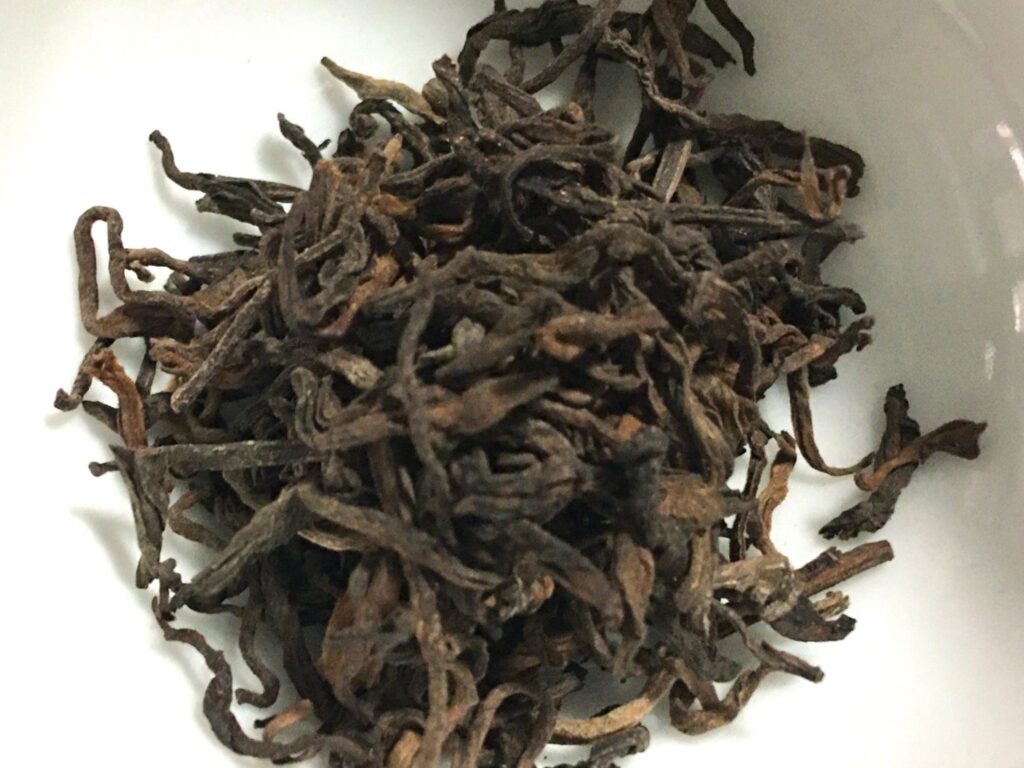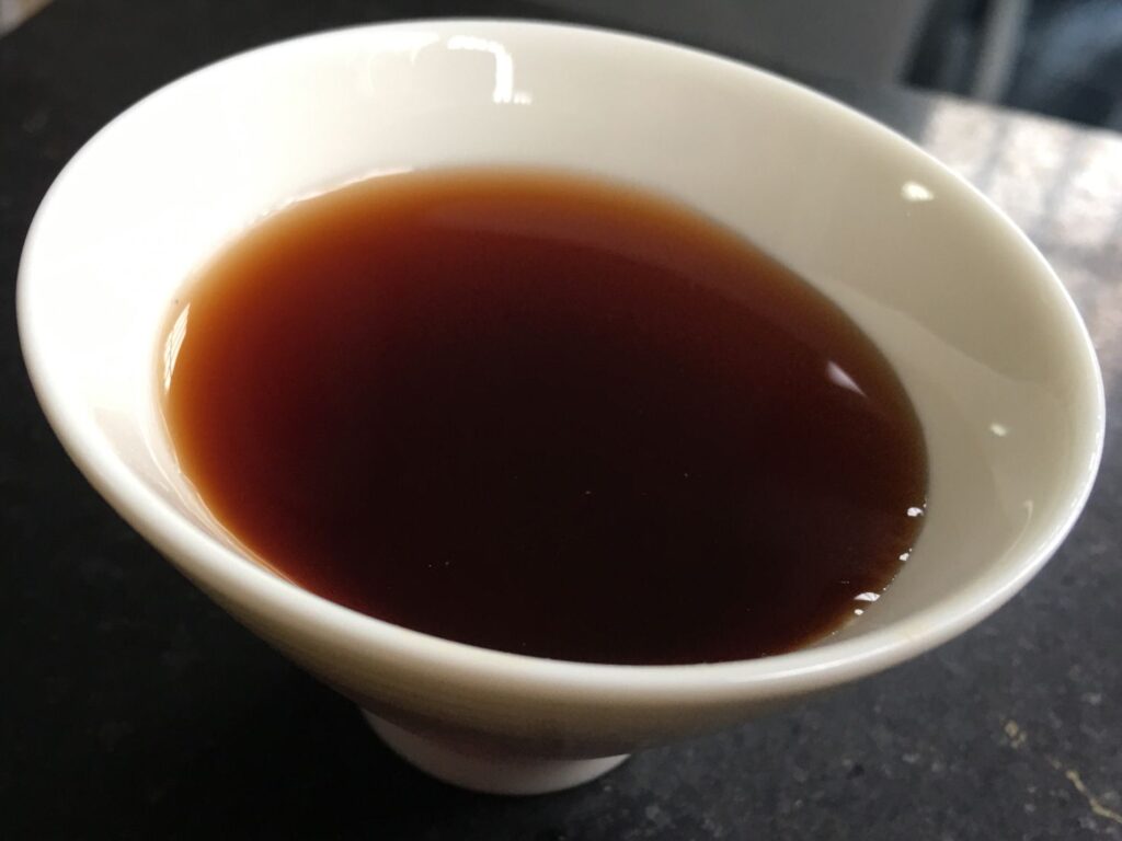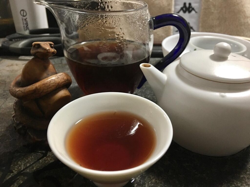 1982; var. assamica, and/or Qimao( taliensis); prepared in Menghai, Yunnan, packaged in Hong Kong, stored in Kunming, Yunnan; bud & 3-4 leaves, Menghai Wò Duī(握堆) Shou Pu’er process; elev. unknown; #TodaysTea, #今天的茶, #JīnTiāndeChá.