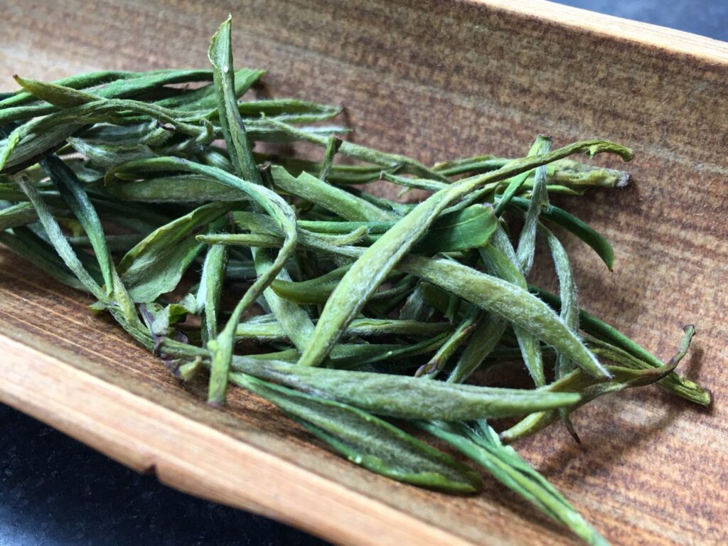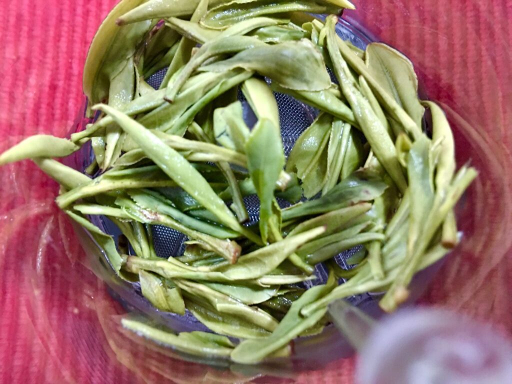 C. sinensis var. unknown; Jiaxing, Zhejiang Province, 200m?; Spring, 2019, one bud and leaf, green tea process. Lóng Jǐng Lǜ Chá, 龙井绿茶, Dragon Well Green Tea. #TodaysTea, #今天的茶, #JīnTiāndeChá, #Tea, #茶, #Chá.