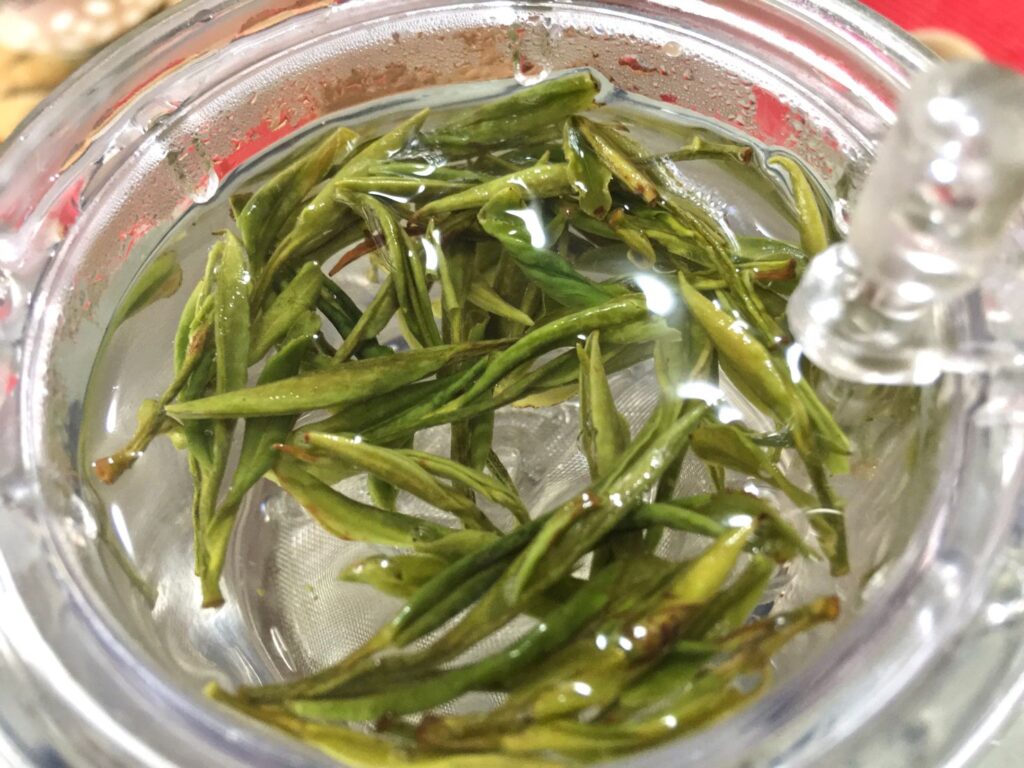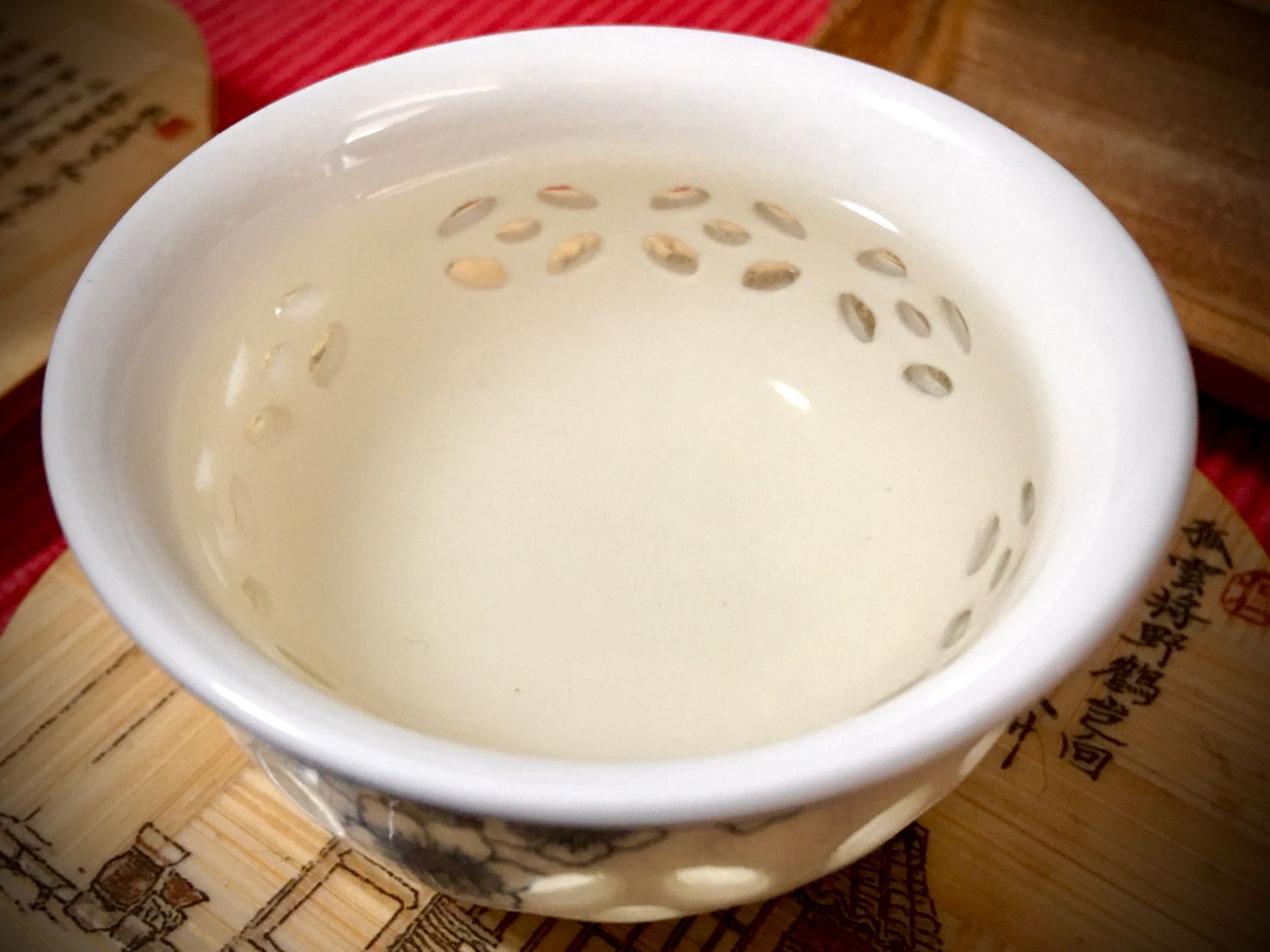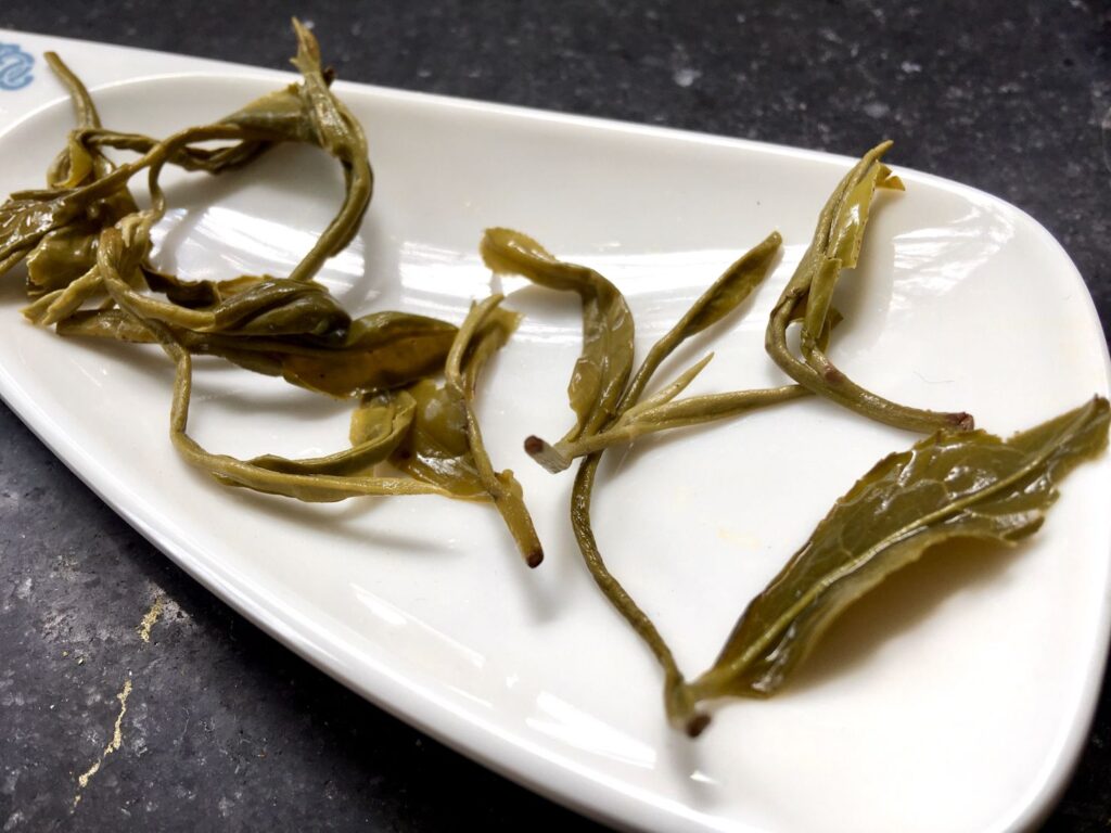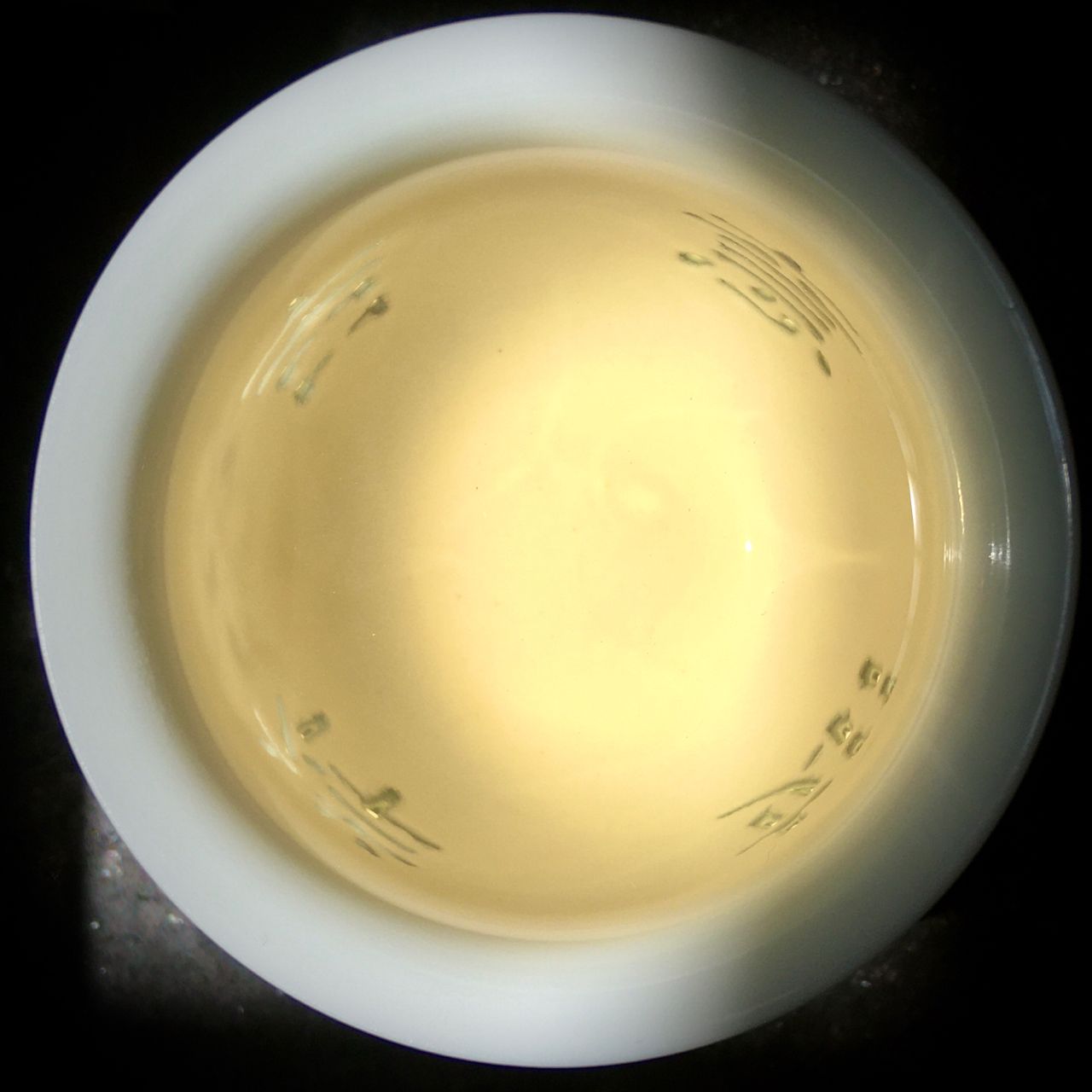 3g of dried leaf was infused in 150ml of water for 15 sec@80-85 deg. C. The brewed tea liquor was pale yellow with a faint green tinge in colour, with an aroma that was soft, elusive… almost non-existent. in the mouth it presents creamy, moderately thick, with a mild peppery tingle, as well as a lingering sweetness, & astringency. The taste had subtle vegetal hints, and was mildly floral with hints of orchid and osmanthus.