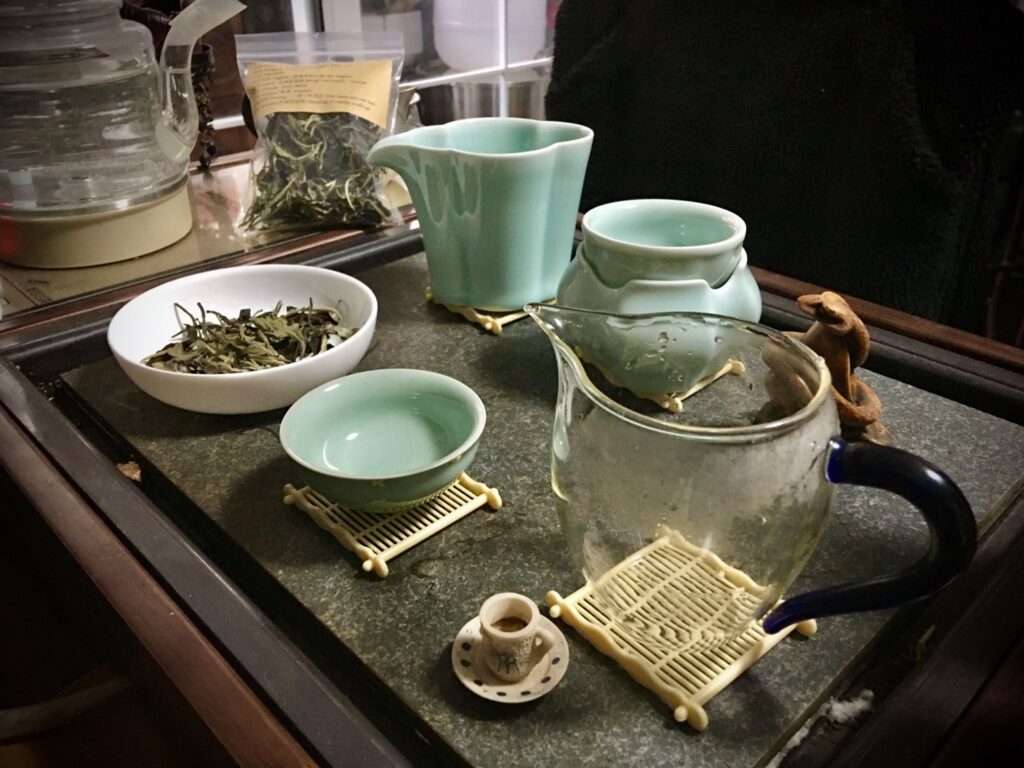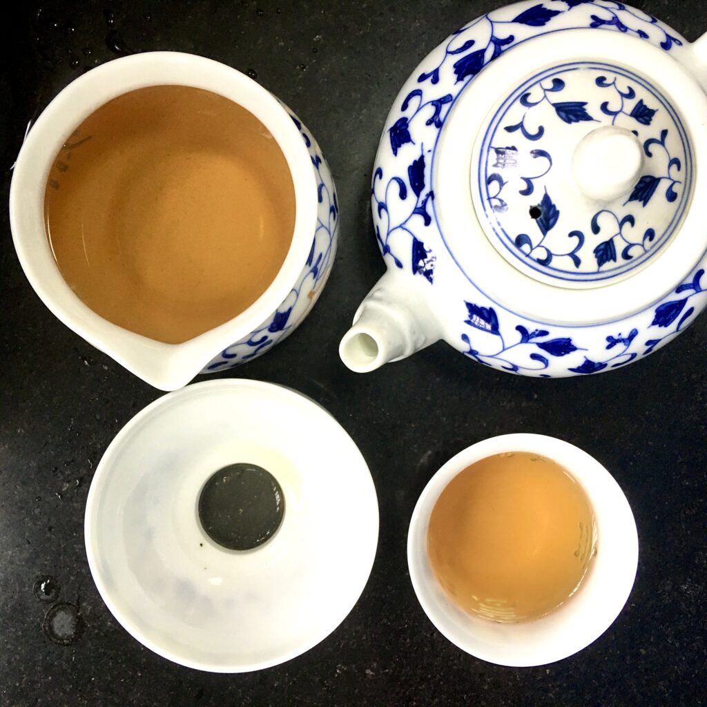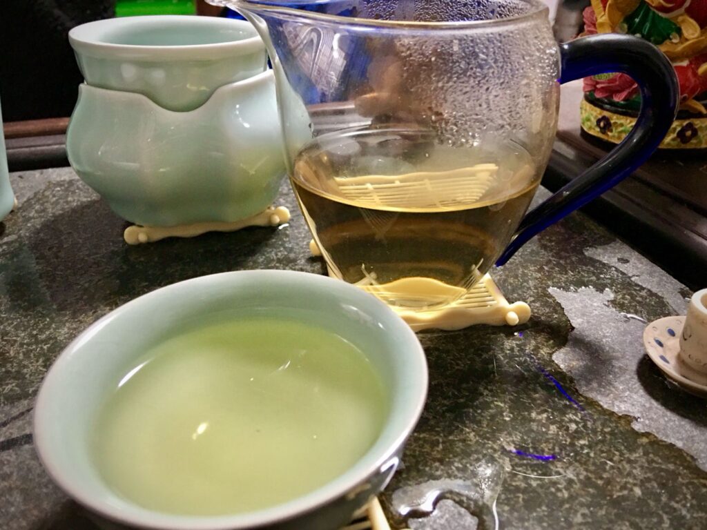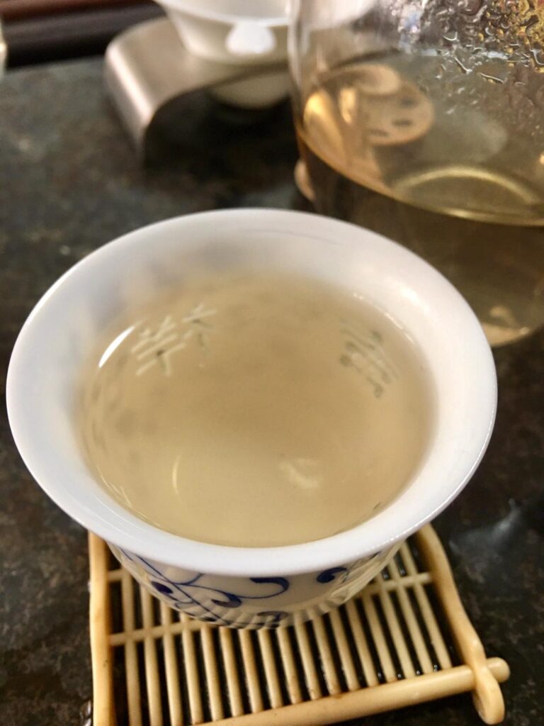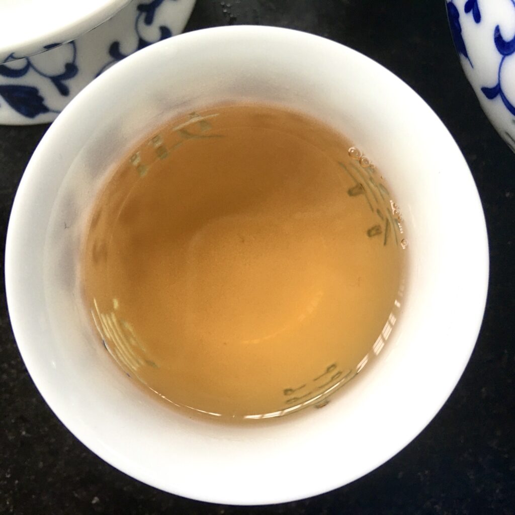 This tea is intensely floral from the infusion with Jasmine blossoms. Even using 5 balls of dry leaf in a gaiwan, I find the tea to be aggressively and intensely florally dominant so much so that the base tea flavour is lost. Back in Australia, as a teenager I discovered “Jasmine” Green Tea at our local Chinese Restaurant. I was so enamoured of it that is was the first thing I’d order whenever we went there. It was the cheap stuff, and was never as intensely floral as this tea. Now, is that intensity a bad thing? I honestly don’t know. It is certainly fair to say, that as a concept, this tea? I just don’t get it… and the aroma gives me a headache. Seriously, it makes my sinuses throb.