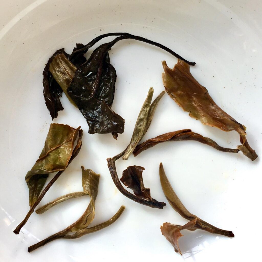 Wet leaf: uniformly green which smell intensely aromatic, and floral, with an undertone of sweet stone fruit;