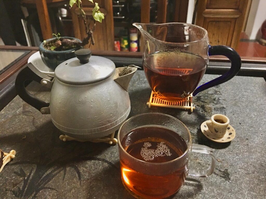 Nowadays this Tea comes in two forms, its original “wild” vine status, and the sweeter “farmed” vine, also it comes in 3, 5 (penta-phylum), and 7 leaf varieties. Today’s Tea, was quite bitter-sweet with the sweetness lingering on afterwards in the finish. It is generally recommended to drink 1-2 cups per day.