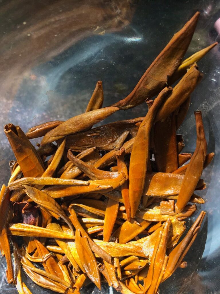 Today’s Tea – Spring, 2020; var. Assamica; Lincang, Fengqing, Yunnan; buds only, sun baked, hand processed; 1600-1900m.