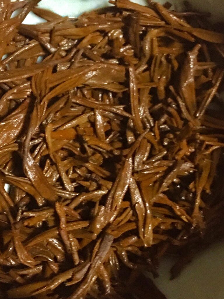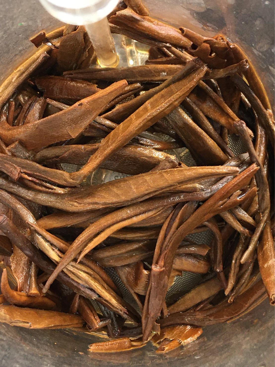 #TodaysTea – Spring, 2019; var. assamica; Fenqing, Yunnan; leaf and stem, old trees (>100yr) black tea process; 1600-2200m