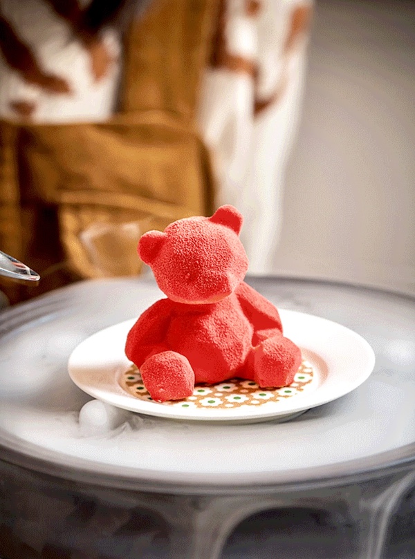 Well, it’s more than I can “bear.” 🤪 Meet, “Charlie,” the Harrod’s Bear. At first look I thought he was made from watermelon, but no: strawberry compote and sponge.