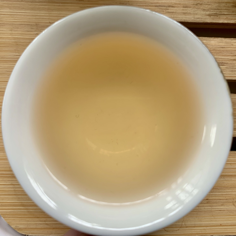 The tea liquor is straw yellow in color, and has a bright, & shimmering oily appearance, with a mild buttery scent.