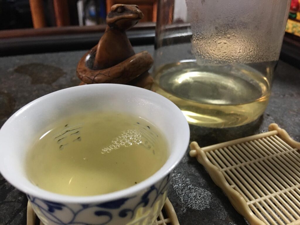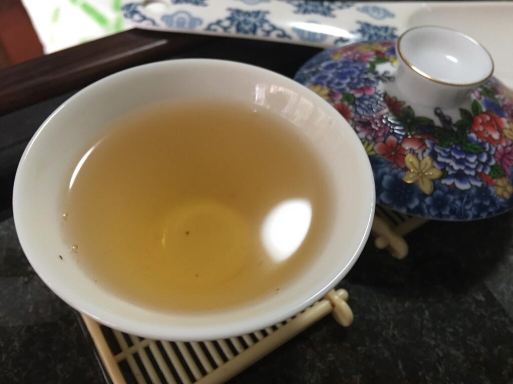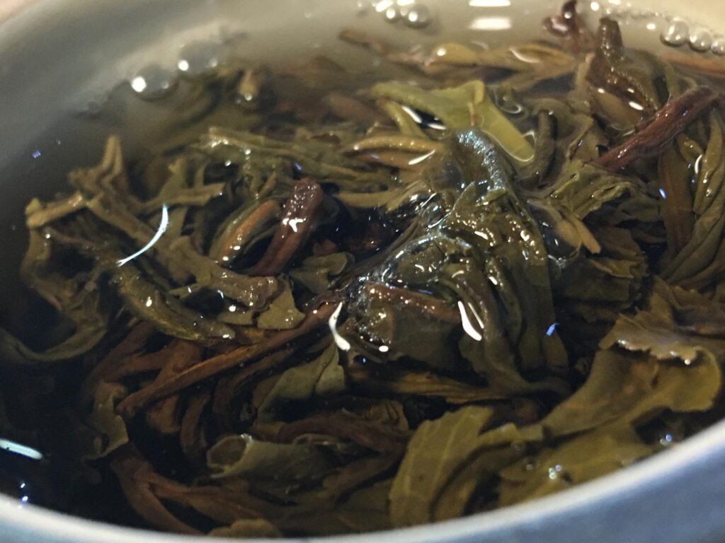 The taste of the first wash to wake up the leaves is intensely bitter with a touch of liquorice and longan, the mouthfeel is thin to moderately textured, with a light astringent, mouthwatering finish and a hint of sweetness. With the first and second steepings, the bitterness is less pronounced.