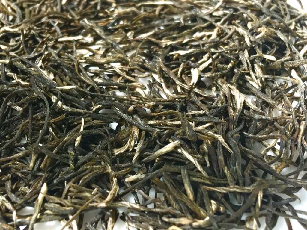 A type of Lapsang Souchong tea. Golden Horse Eyebrow. Tongmu Village, Wuyi Mountain, Fujian Province. Developed orig in 2005 by Jiang Yuanxun. 1200m. Single bud. Spring, 2015. Hand rolled.