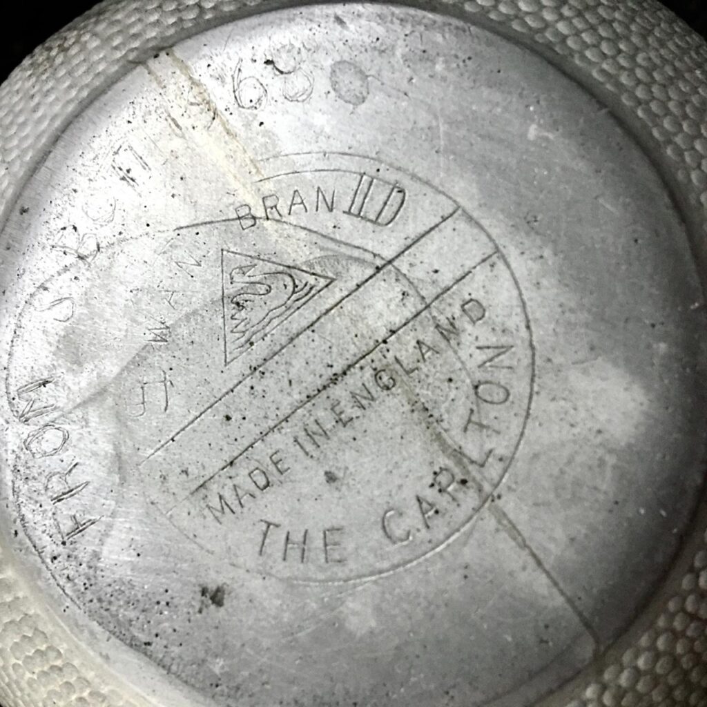 About the Pot: It is an aluminum,  #Swan Brand #Teapot, Made in England, and is “The Carlton” model. The hand scratched inscription seems to read, “ From S. Bott 1968” I was born in 1966. As long as I can remember, my #grandmother used this teapot to make herself a cup of tea each day. It ended up in my Mum’s b&b and I eventually took it over (the teapot) some 20 years or so ago. In some way, this is the first ever teapot I noticed, or deliberately took into my collection. I still use it to this day.
