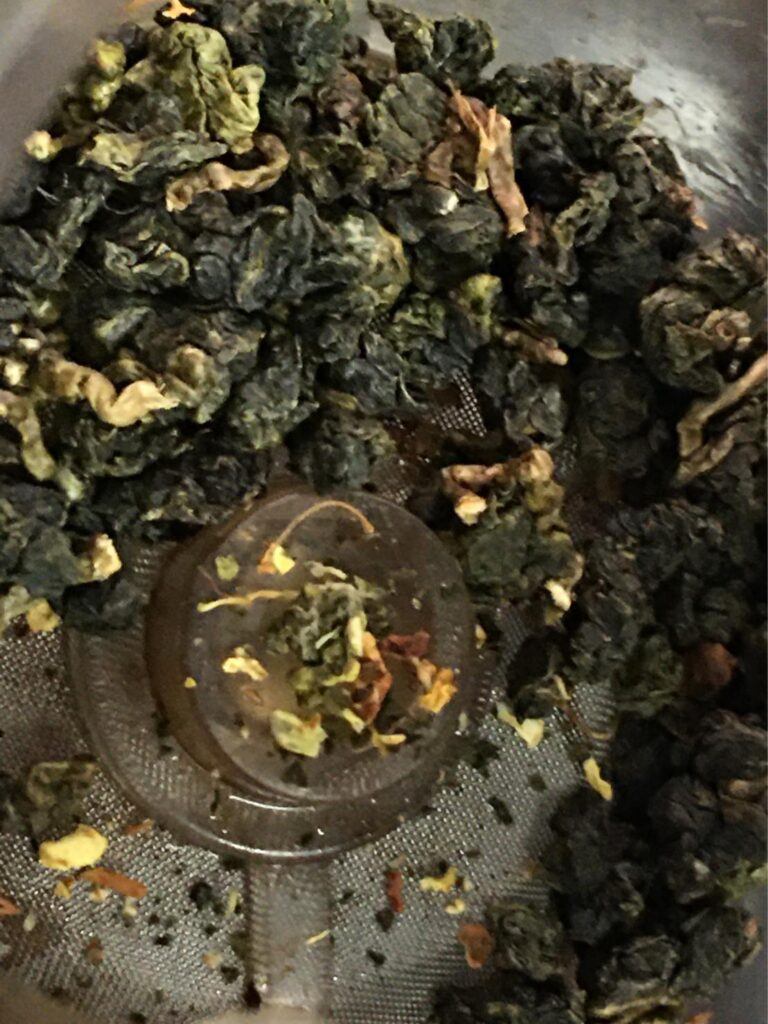 #TodaysTea#Guihua Wulong Cha – Osmanthus Oolong Tea. Spring, 2019; Made with Anxi Gaoshan (#Tieguanyin) YanXian OolongTea and Osmanthus flowers in Anxi, Fujian; Beijing Wu Yutai Tea Industry ltd, Beijing; stem and 2-3 leaves, light oxidation, scented with flower petals; high mountain source.