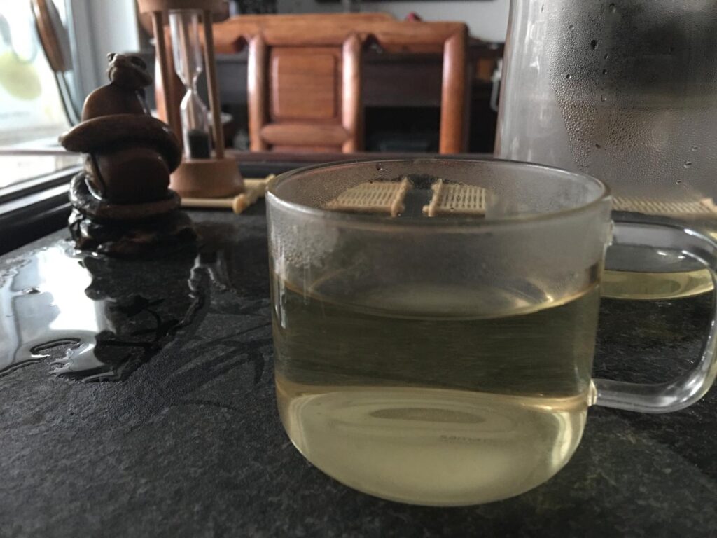 The tea tastes syrupy, thick, creamy and buttery, with hints of apricots, peach, almond, and a lingering, gentle coconut finish. Very pleasant.