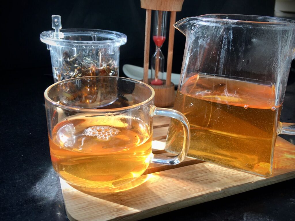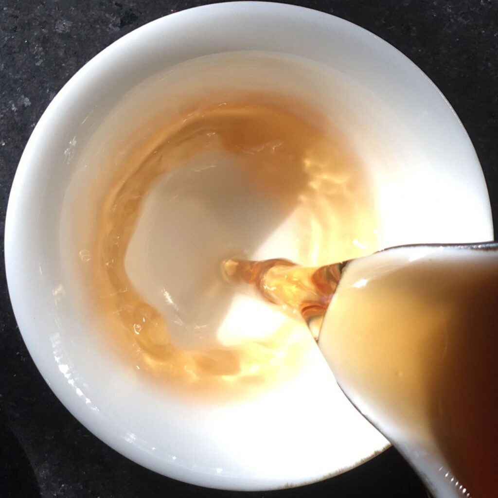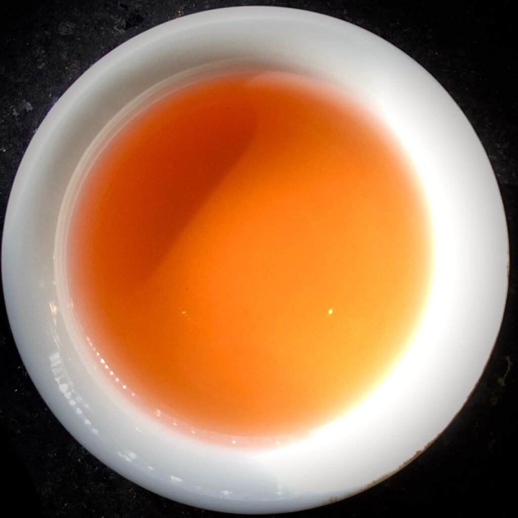 5g of dry leaves were infused in 150ml of water for 20-30sec.@100deg. C. The brewed tea liquor is a crystal clear, vibrant ochre colour with a glossy sheen, and has a subtle, woody, spicy, honey-sweet and chocolate-like scent.