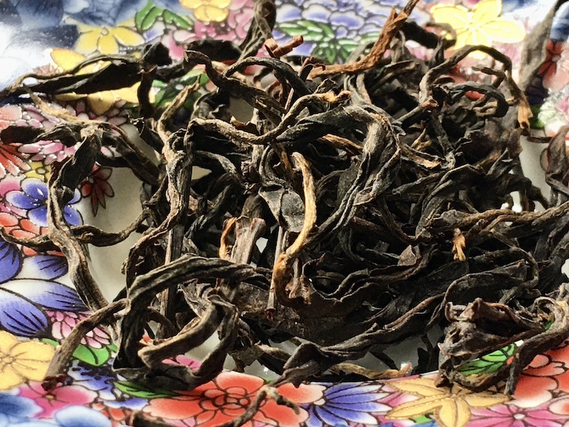 A blend of C. sinensis “qidan” & other Wuyi cultivars; Tea Master Liu Guoying, Wuyishan Yanshang Tea Science Research Institute, Wuyishan, Nanping, Fujian, elev. unknown; Spring 2016, zhou kai mian – 3 slightly open leaves, charcoal roasted, traditional tea roasting process; #TodaysTea#今天的茶#JīnTiāndeChá#Tea#茶#Chá.